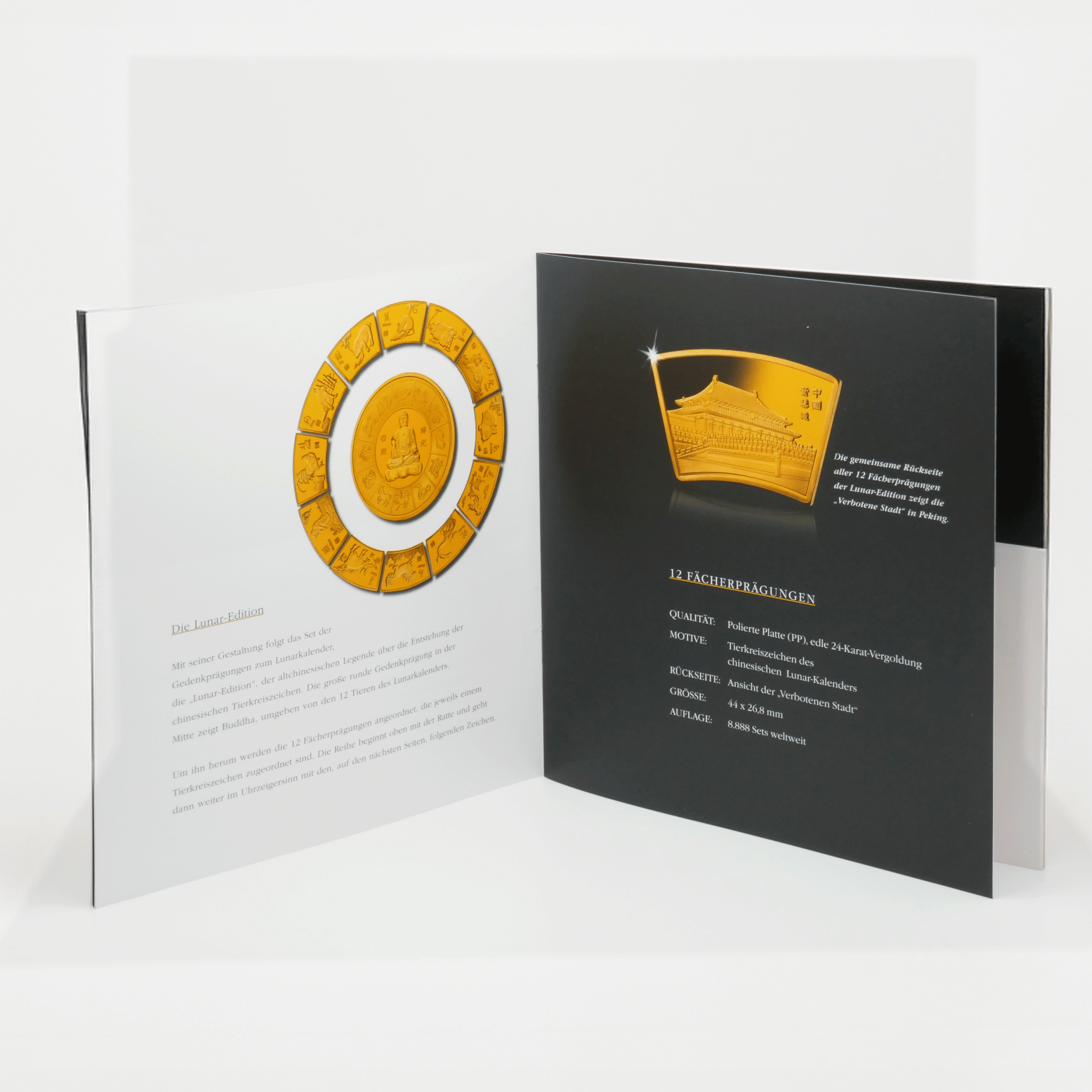 Die vollständige Lunar-Kollektion in originaler Holzvitrine inklusive aller 13 vergoldeten Prägungen und umfangreicher Begleitdokumentation.