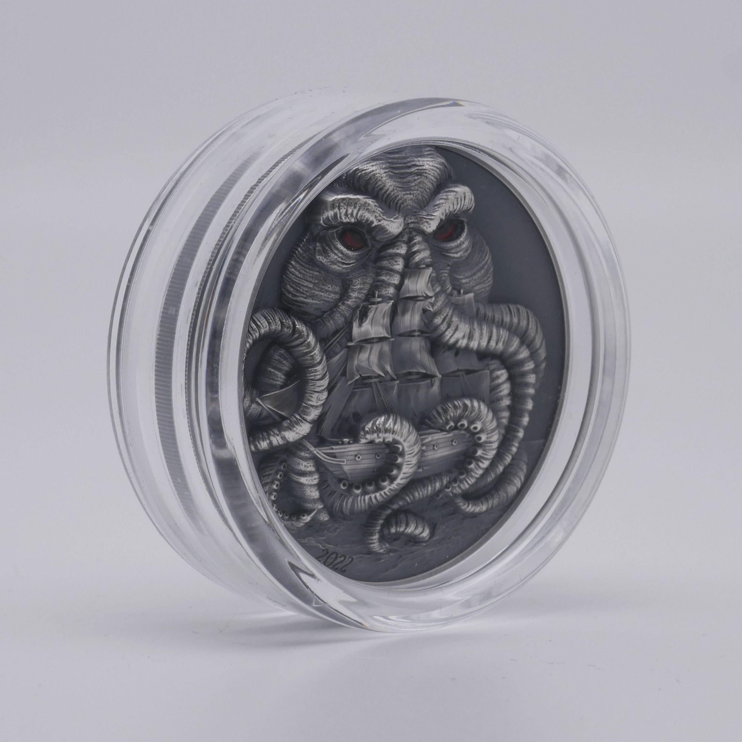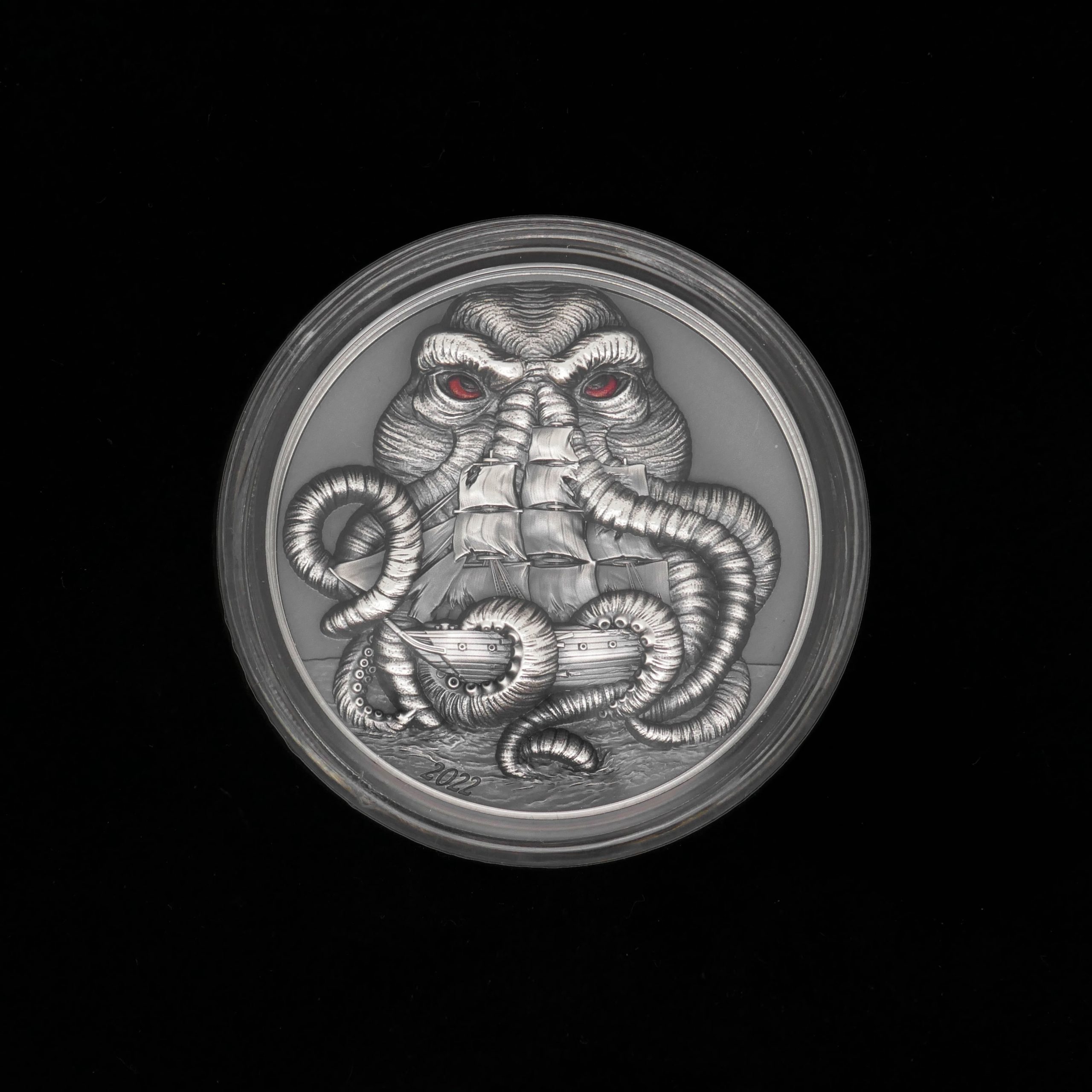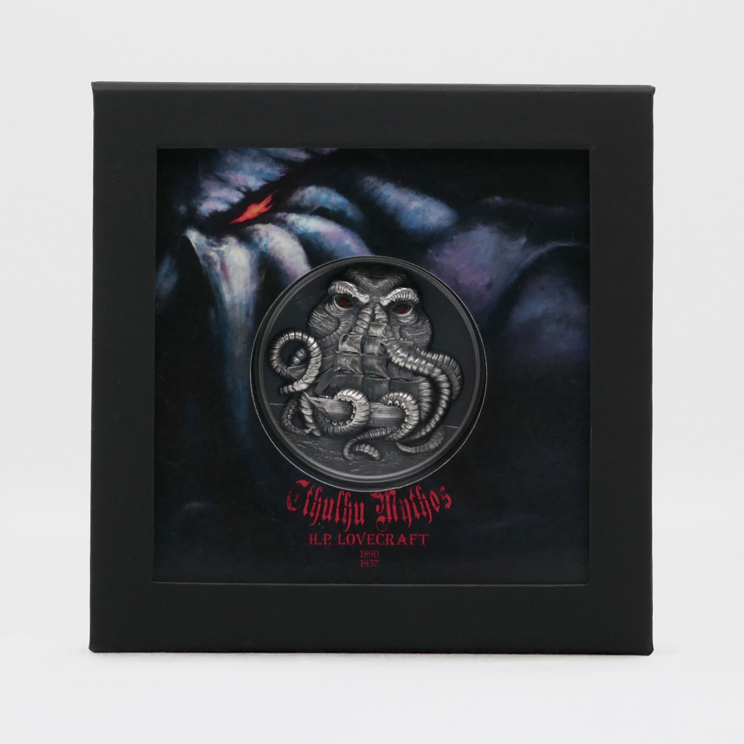 Außergewöhnliche Sammlermünze aus der renommierten Serie Cthulhu Mythos, inspiriert vom Werk des Schriftstellers H. P. Lovecraft.