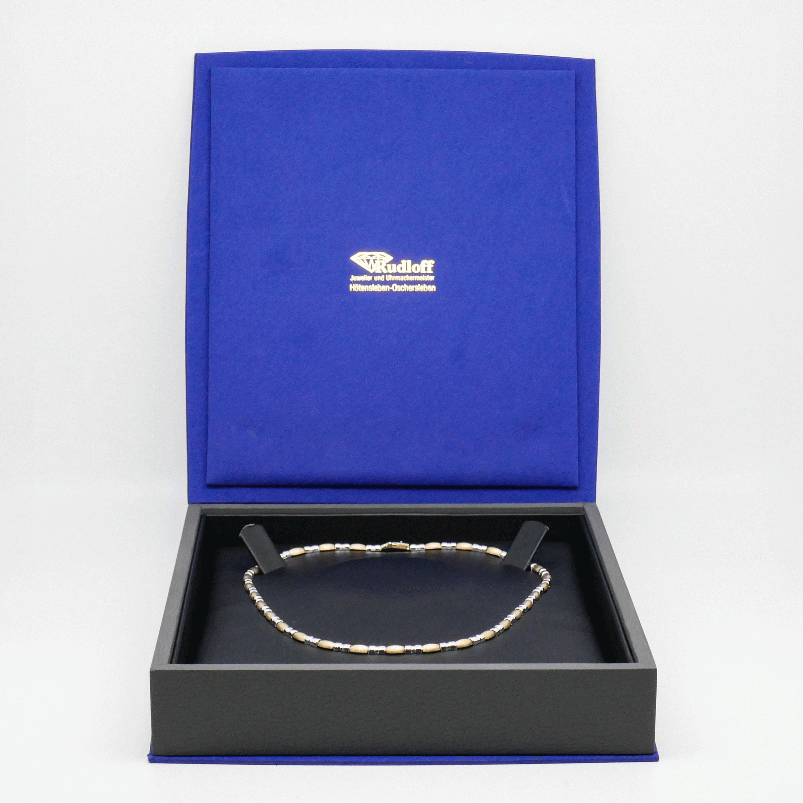 Die gleichmäßig gearbeiteten, abwechselnd gelb- und weißgoldenen Glieder verleihen dieser Kette eine elegante Bicolor-Optik mit edlem Kontrast.