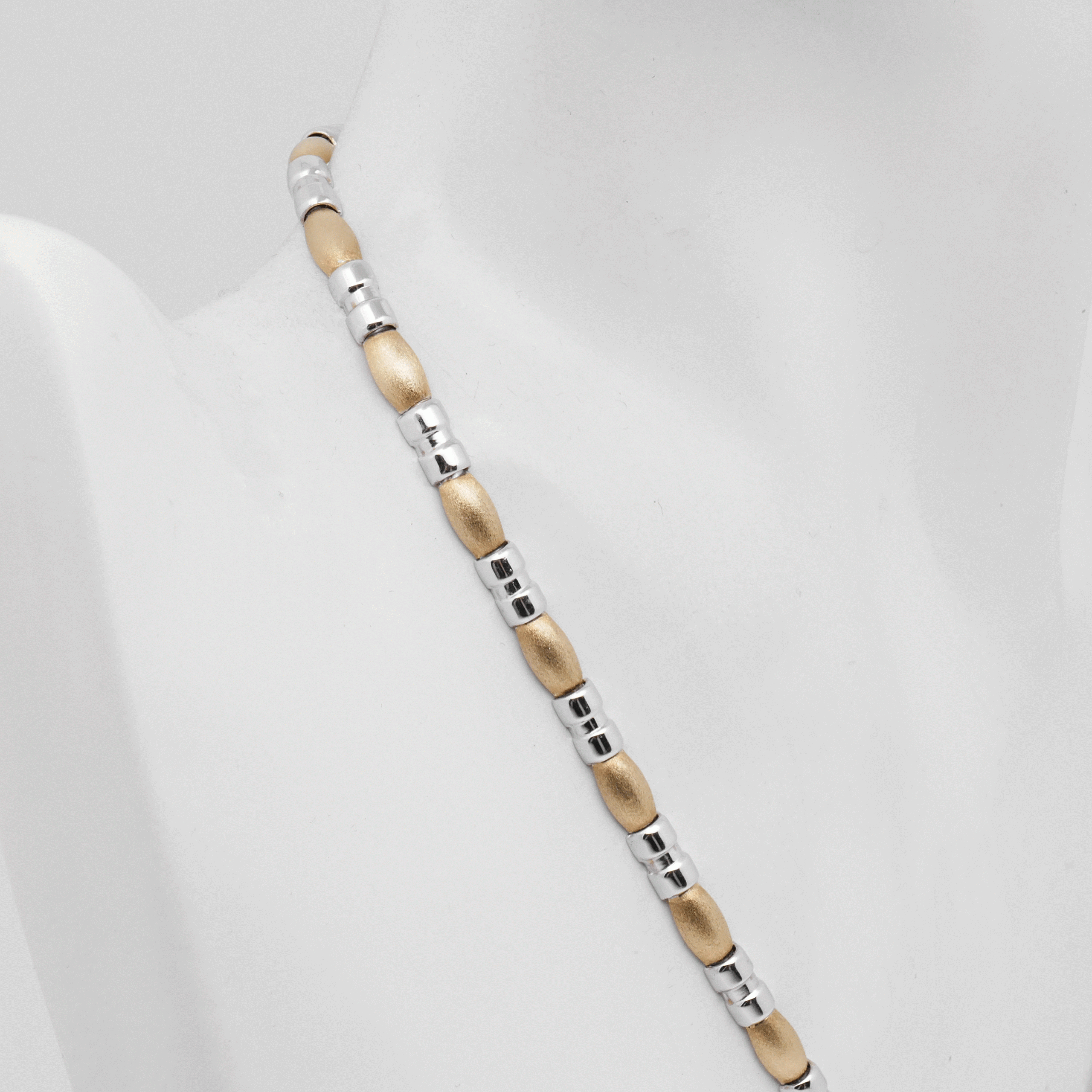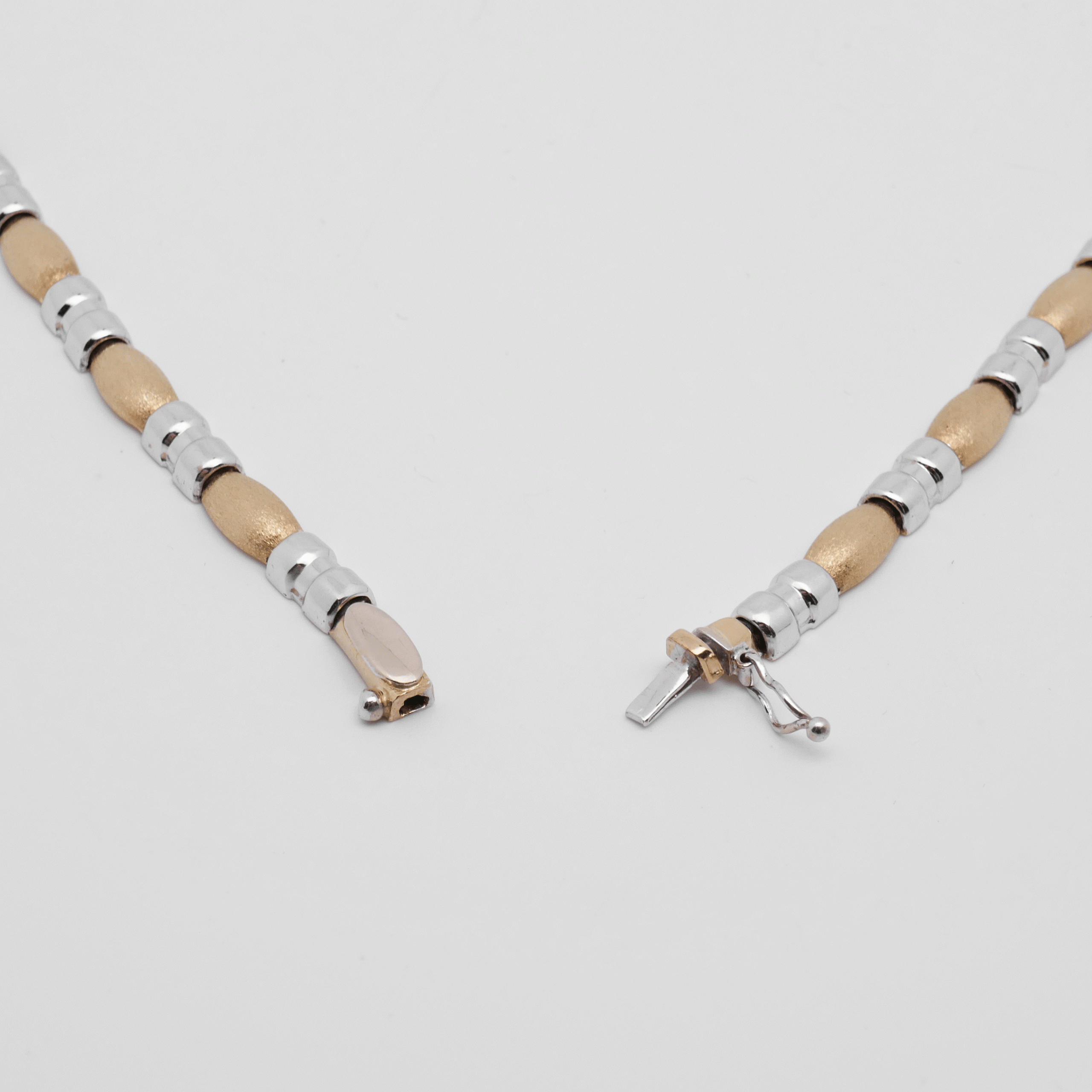 eine Halskette aus 585/- (14 Karat) Gelb- und Weißgold.