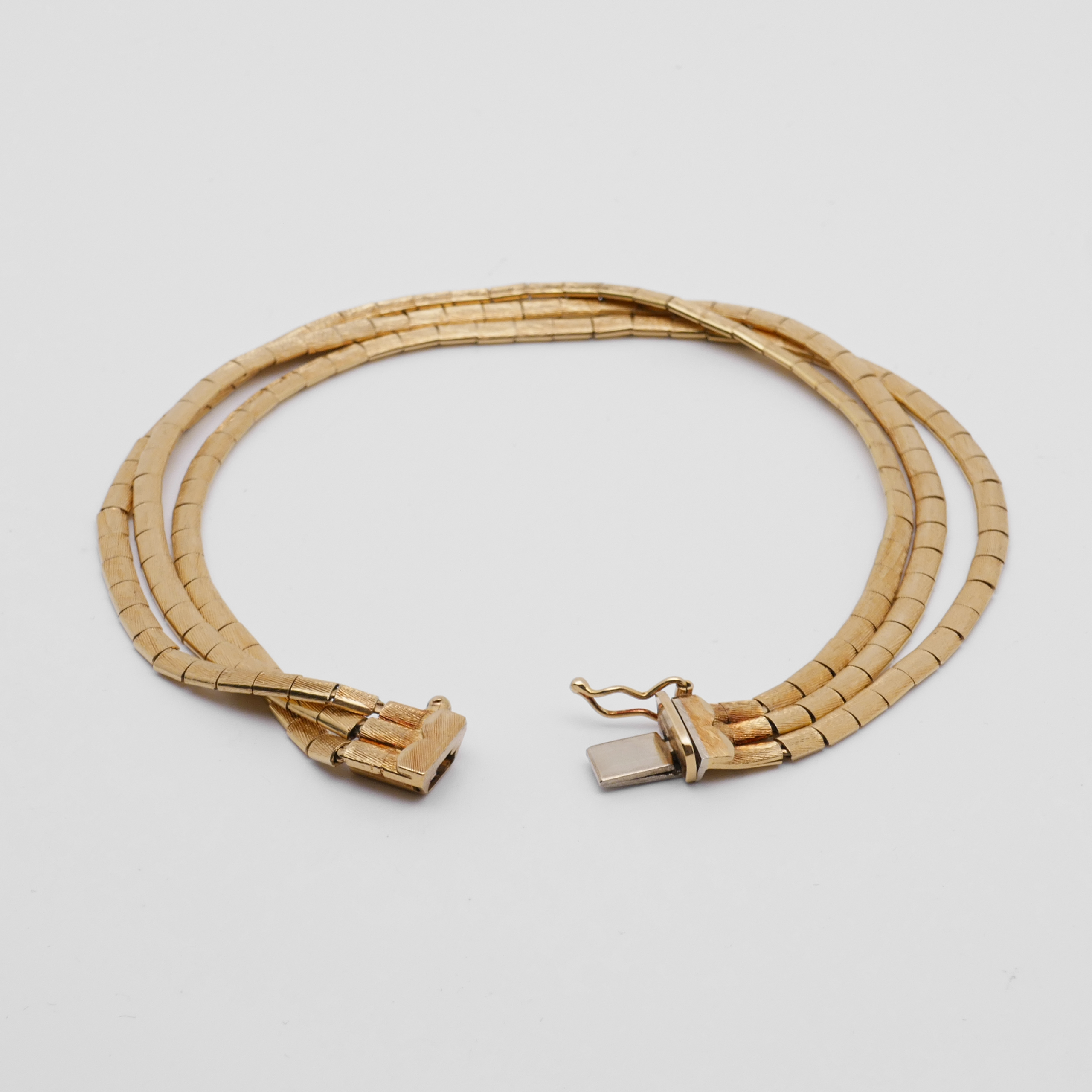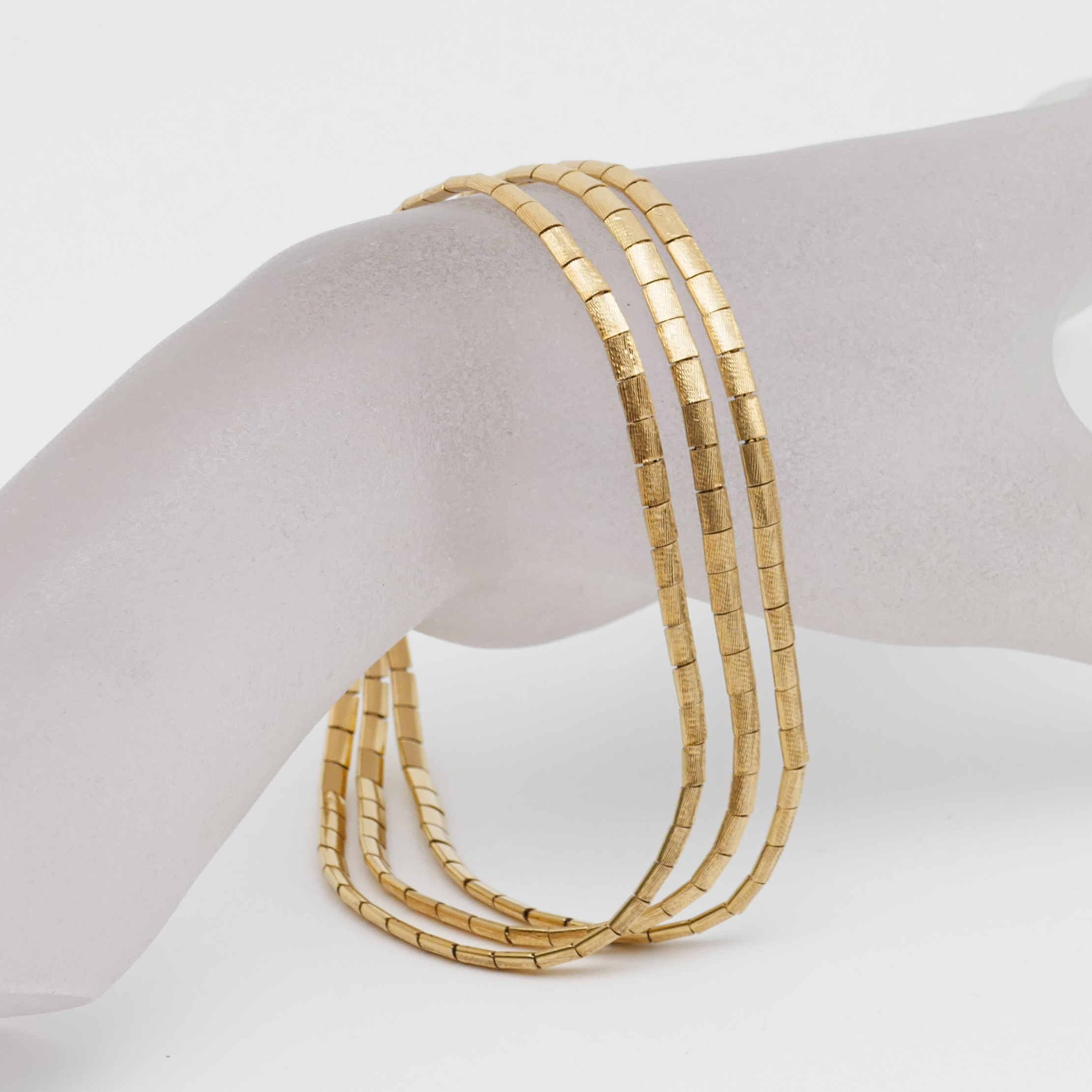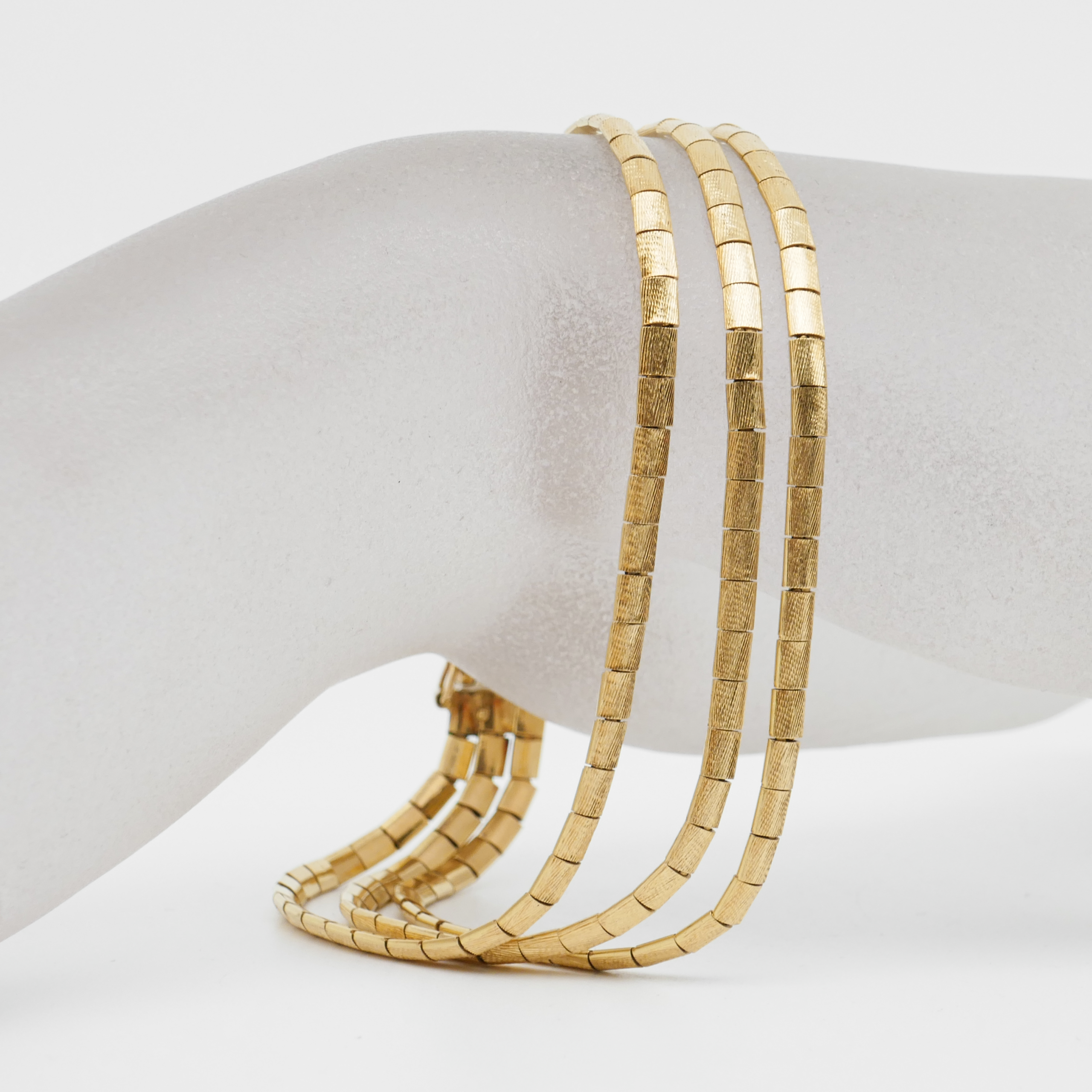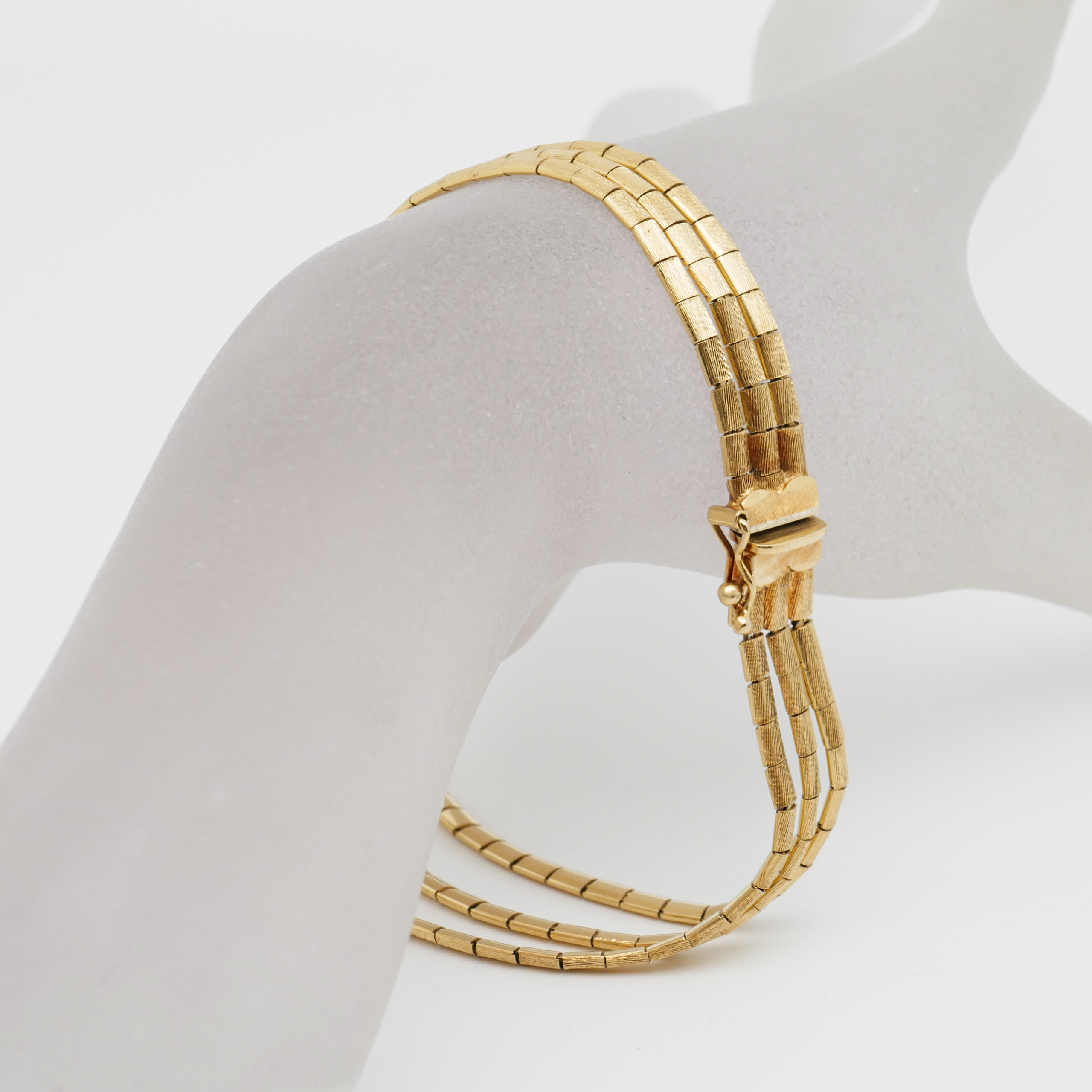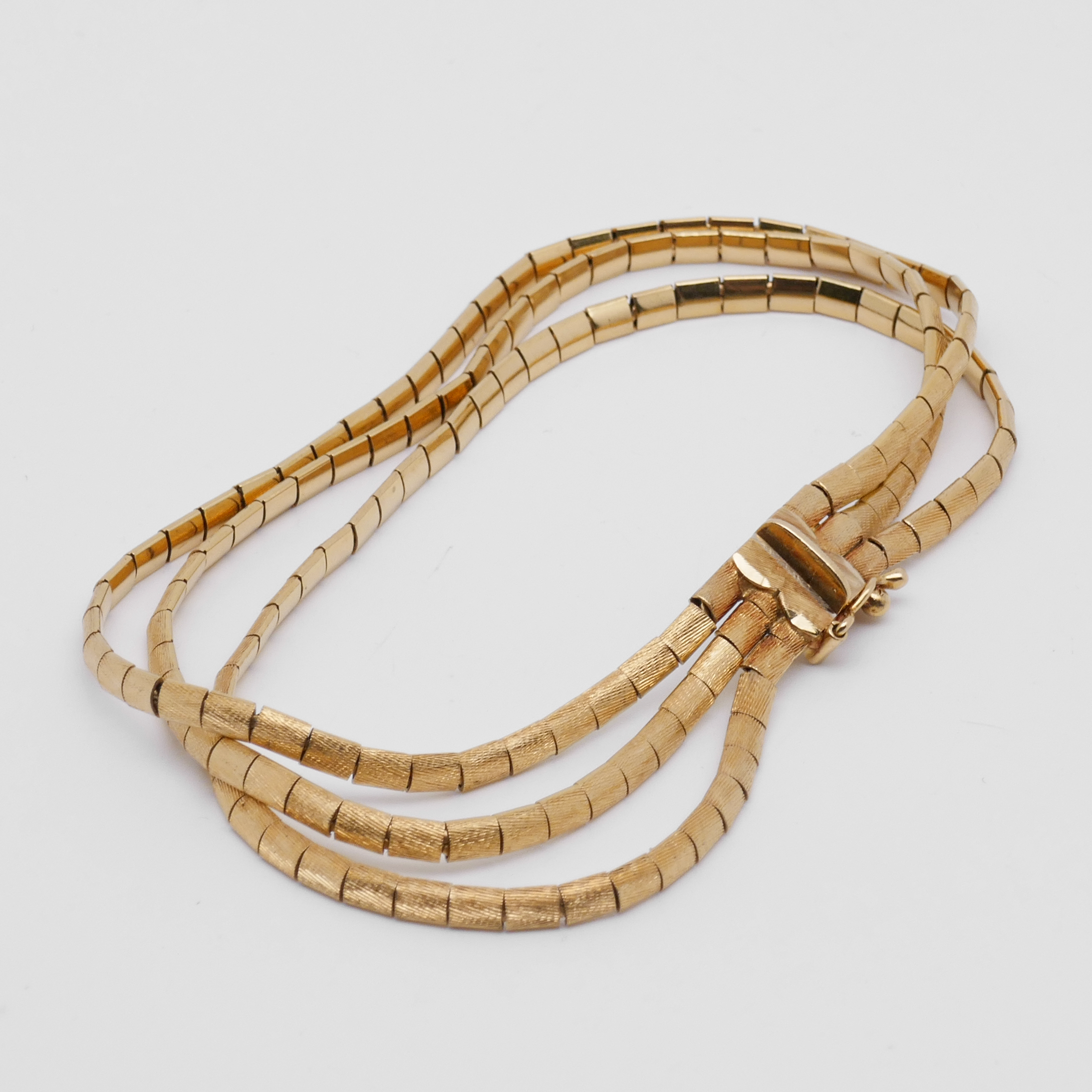 Elegantes, dreireihiges Vintage-Armband aus 750er (18 Karat) Gelbgold.