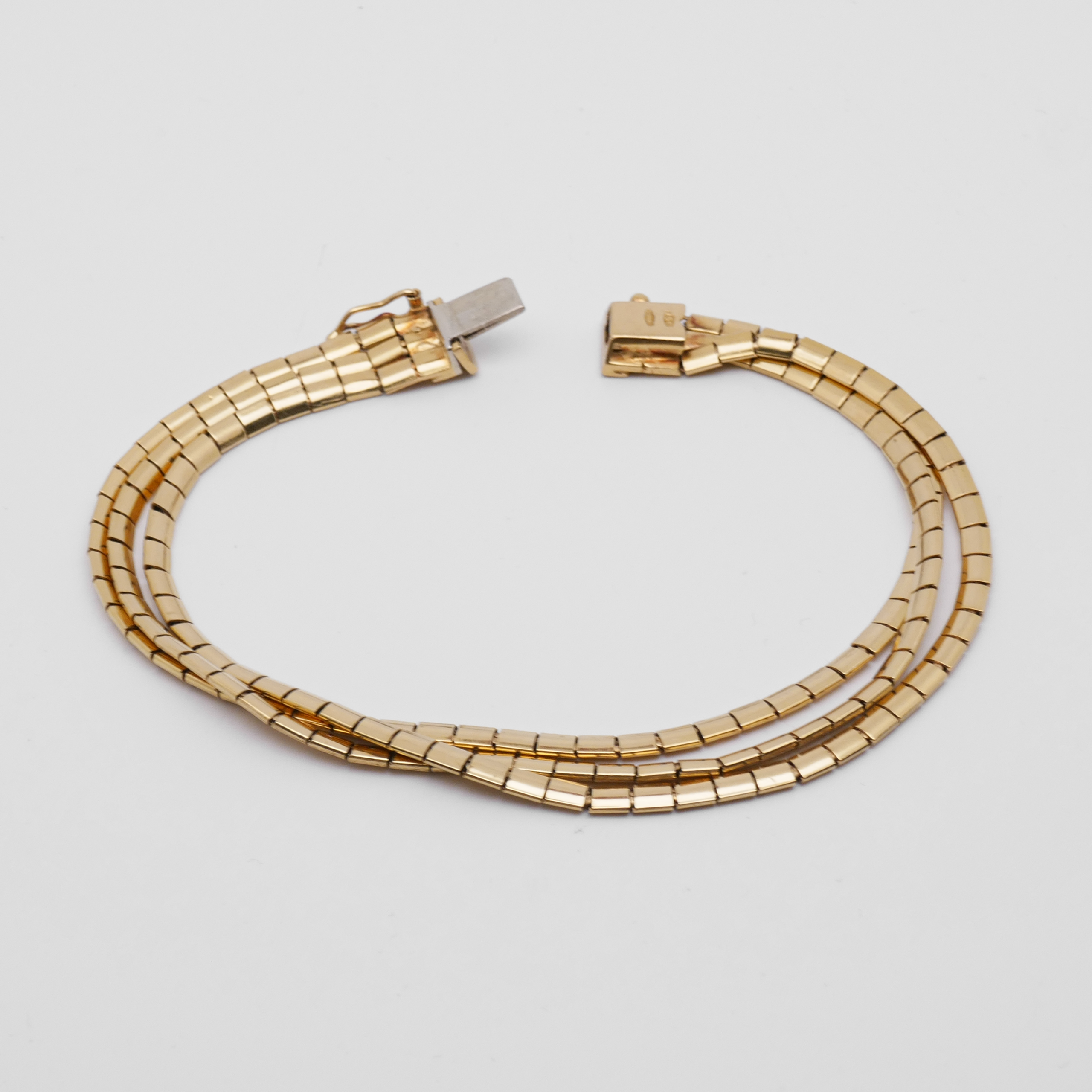Elegantes Vintage-Armband / 21,5 Gramm – 750 18 Karat Gelbgold / Dreireihiges Design / 19,5 cm / 21460