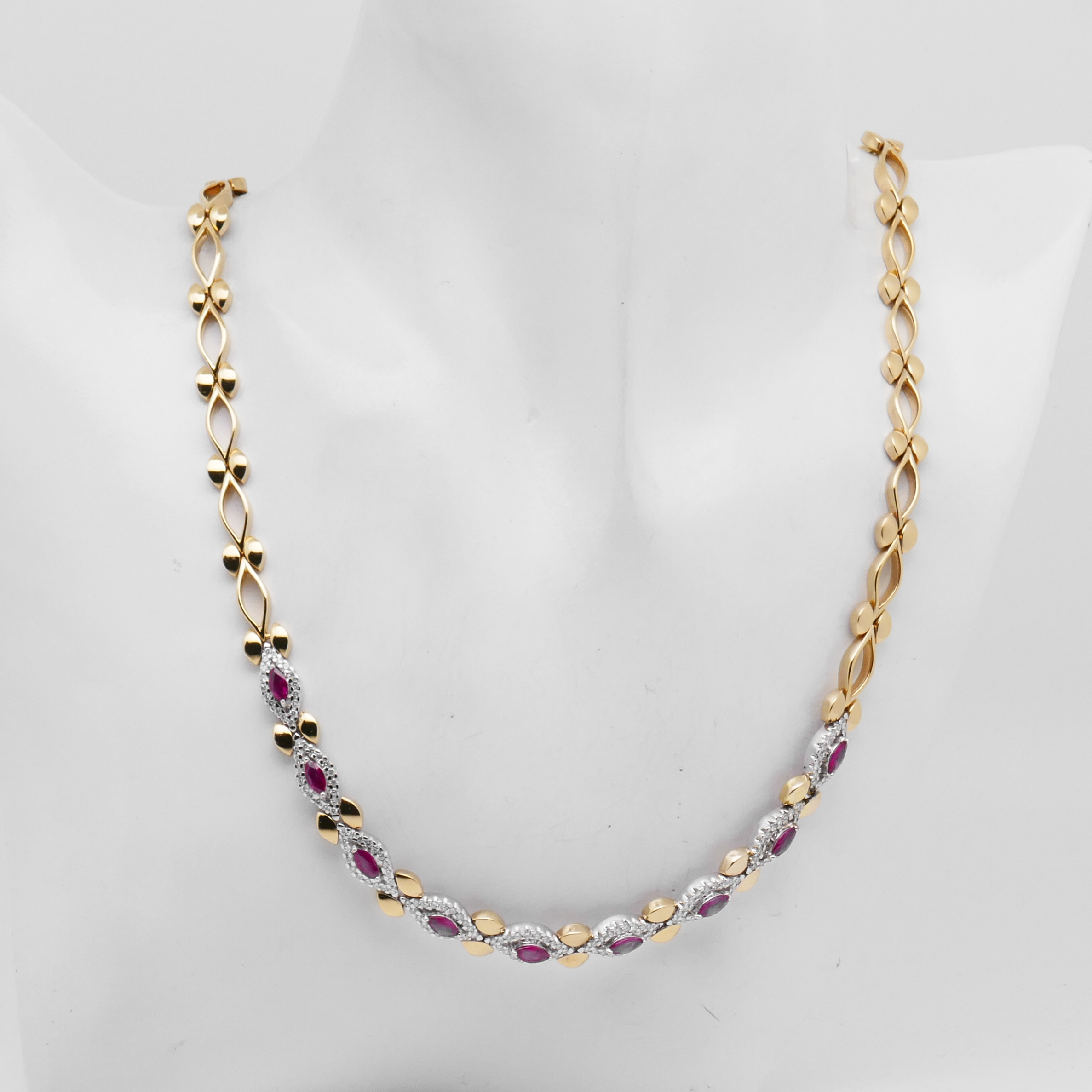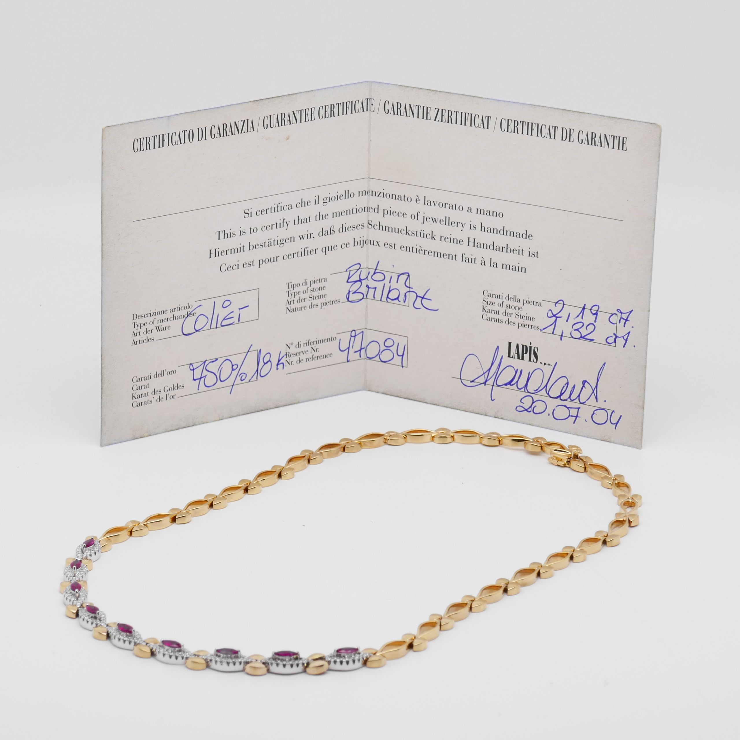 Ein prachtvolles Collier aus 750er (18 Karat) Gelbgold mit edlen Weißgoldelementen, besetzt mit erlesenen Rubinen und Brillanten.