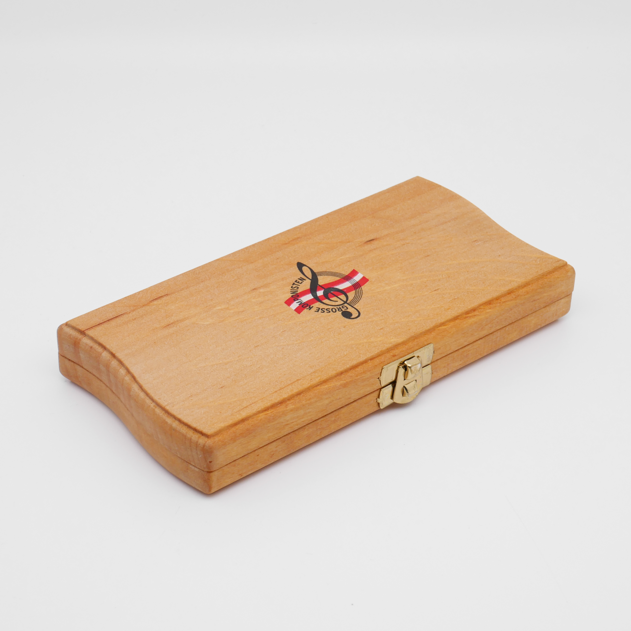 - Original Holzschatulle mit rotem Samt-Einleger